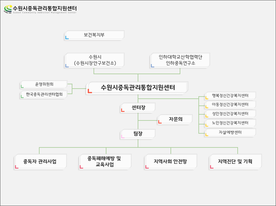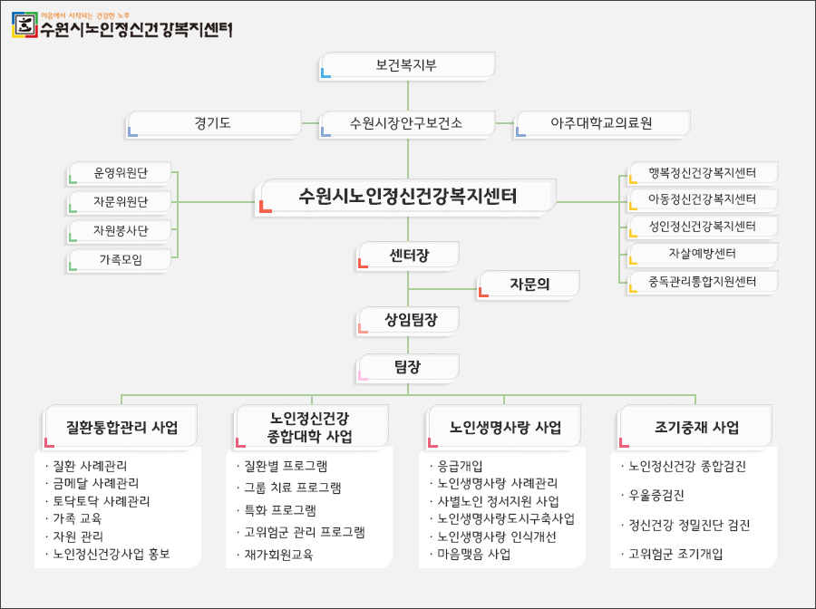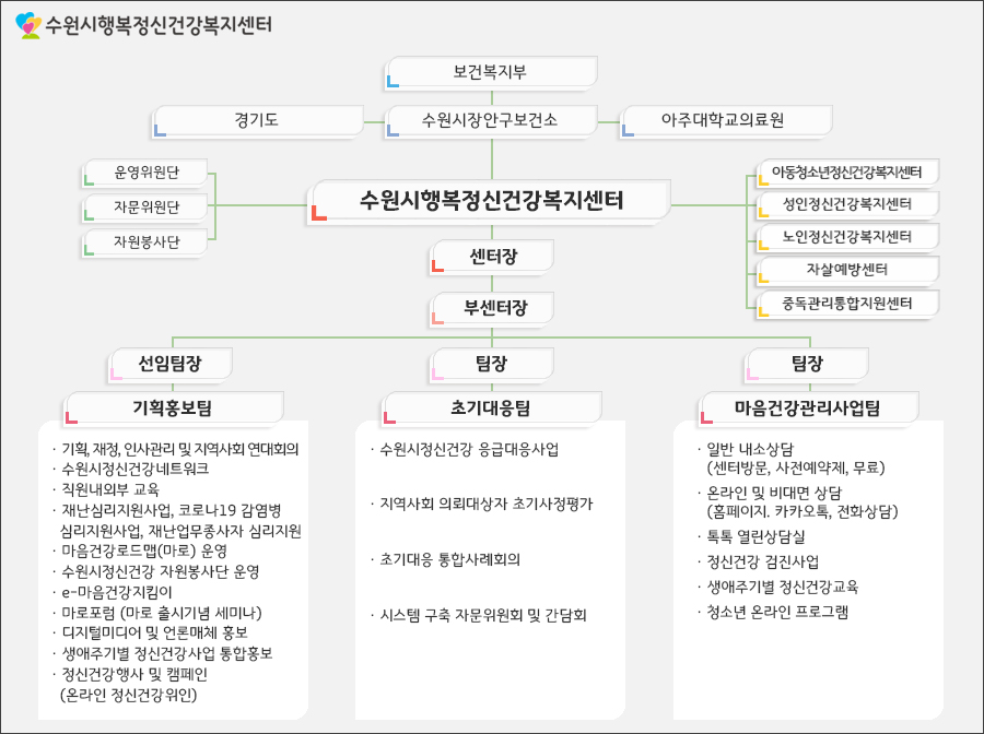 | 2022년 수원시정신건강사업단 조직도 안내. | |||
