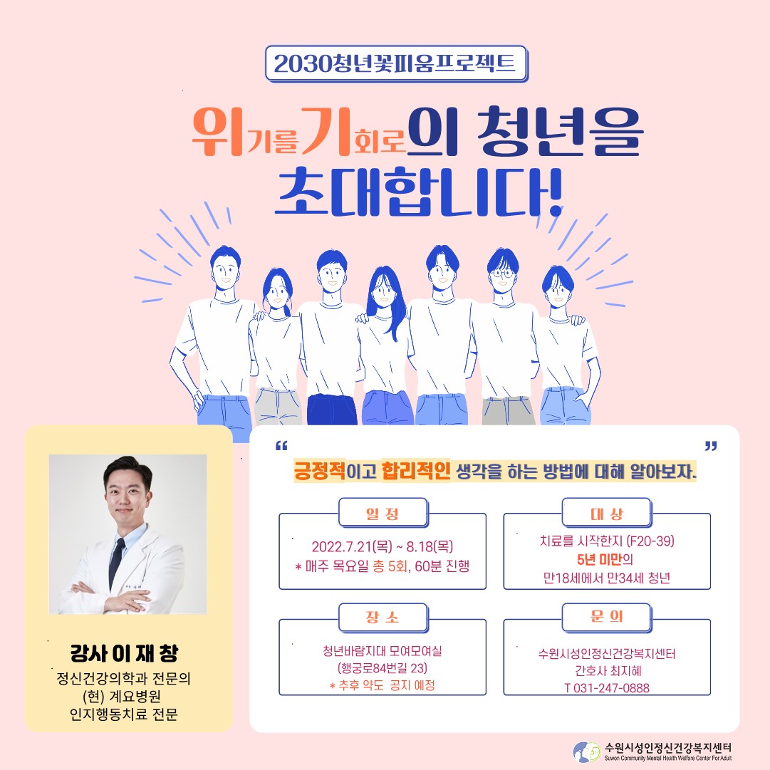 * 대상: 수원시 거주중인 청년(1984-2003) 중 정신과 치료를 받고 있는 청년