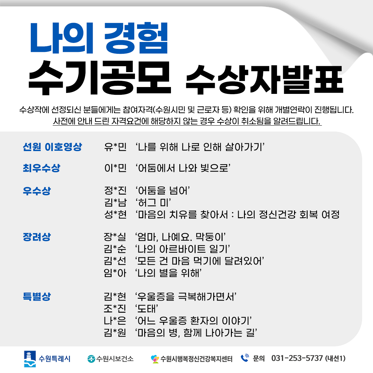 | 정신건강 인식개선 행사 <나의 경험 수기공모> 수상자발표 | |||