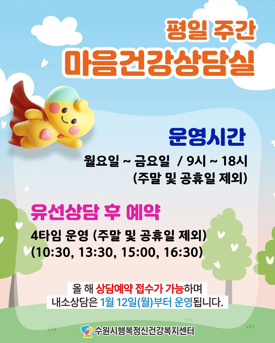 | 수원시행복정신건강복지센터 <2026년 내소상담> 운영 및 예약안내 | |||